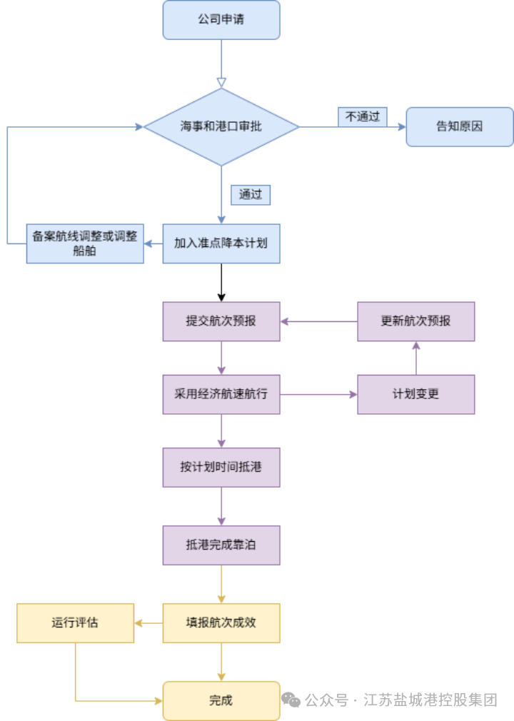 2.評估確認:直屬海事局歸口業(yè)務部門牽頭召集港口、航運公司對航線運行情況、船舶安全狀況、公司管理水平、港口保障能力等進行會商評估。會商同意的,直屬海事局歸口業(yè)務部門和港口在智慧海事監(jiān)管系統(tǒng)“準點降本”模塊以及外網端對航線備案進行確認,標志著該航線正式加入計劃。