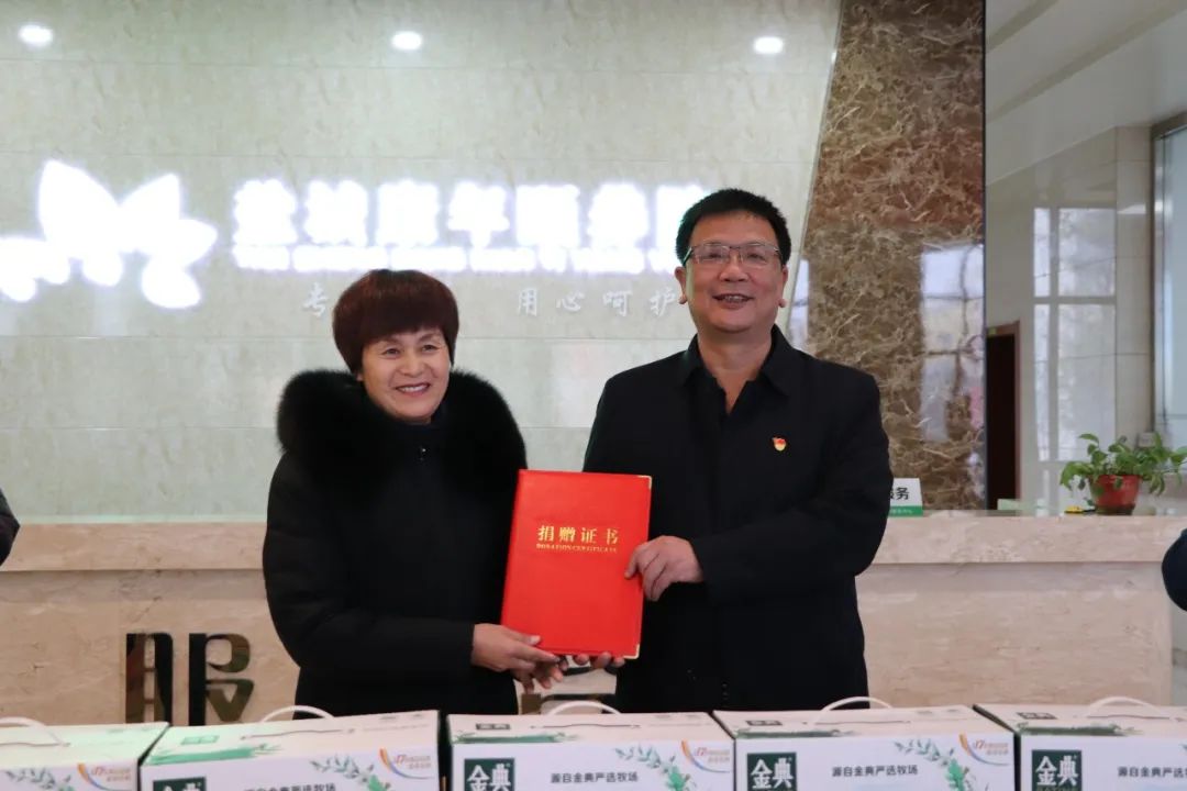 康年頤養(yǎng)院成立于2017年,是我市養(yǎng)老事業(yè)發(fā)展的重點單位,也是我市唯一一家省級“五星級養(yǎng)老單位”,其服務質量等各方面均得到了各級領導的認可。目前該院已入住400多位老人,其中五保老人約100人。活動現(xiàn)場舉行了慰問物資捐贈儀式,徐桂榮代表康年頤養(yǎng)院向集團頒發(fā)捐贈證書。