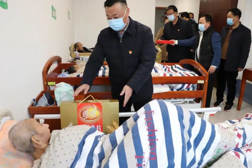 捐贈儀式結束后,周旭東一行還走進康養(yǎng)病房,親切地給入住的老人們送上新春的祝福。