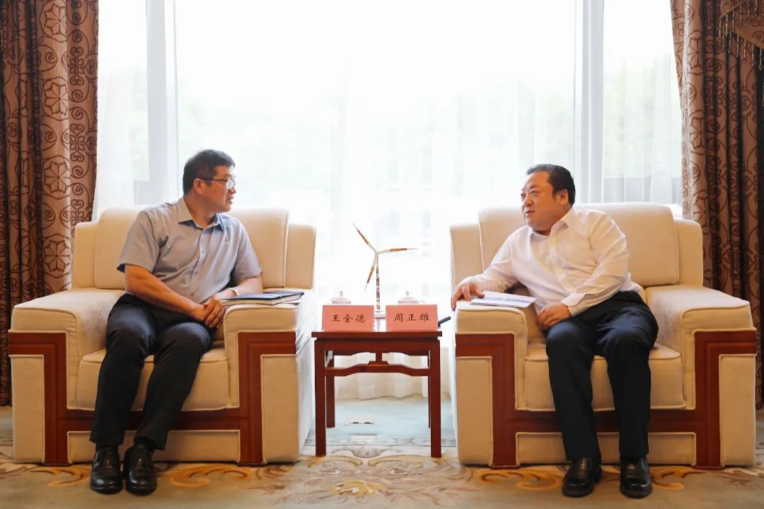 8月21日,集團黨委書記、董事長周正雄會見金風科技江蘇分公司總經理王全德一行,雙方就開展業務合作進行交流。集團副總經理袁欣,金風科技江蘇分公司及集團相關負責同志等參加。