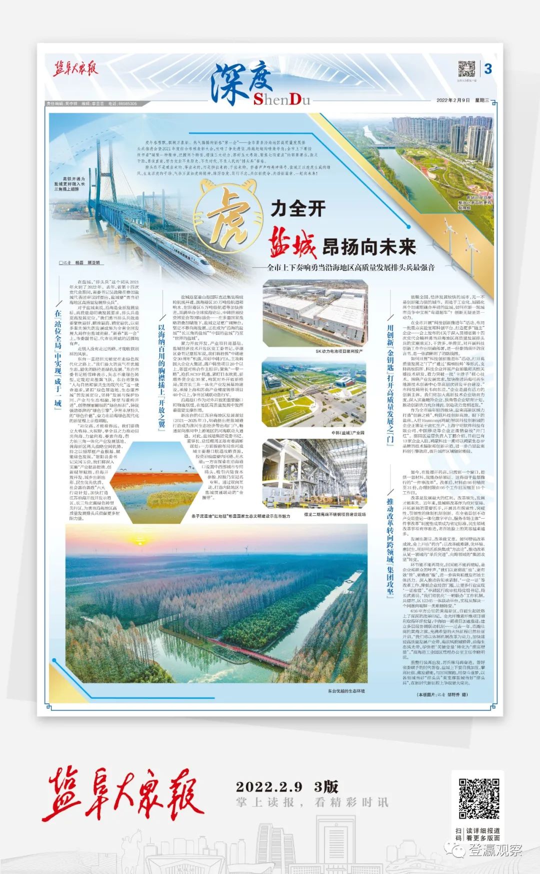 排頭兵不是喊出來的、等出來的,而是拼出來的、干出來的。伴著聲聲響亮沖鋒號,鹽城正以虎虎生威的雄風、生龍活虎的干勁、氣吞萬里如虎的精神,踔厲奮發、篤行不怠,共扛新使命、共譜新篇章、一起向未來!