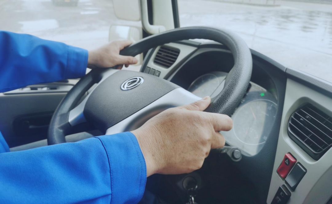 自卸車司機用雙手緊握著