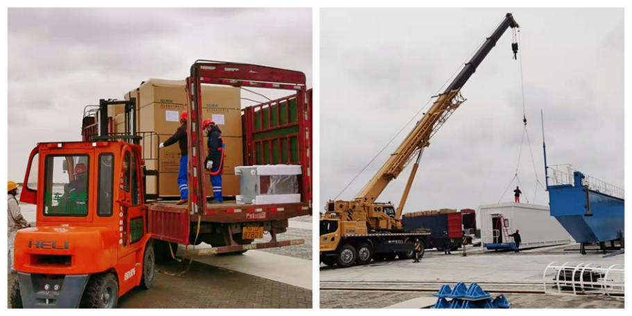 截至目前,重箱堆場、空箱堆場、熏蒸場地、港內(nèi)堆場等基層、面層已全部完成,道路與堆場工程量已完成約98%,邊檢樓沉樁完成144根,進、出港閘口基礎(chǔ)與主體柱已完成4根,變電所、進出港閘口、查驗平臺及監(jiān)管倉庫、維修保養(yǎng)車間、生活污水處理站等附屬設(shè)施土建方面工程量已完成約70%,1臺GJQ型41t-40m軌道式集裝箱門式起重機主體已吊裝完畢,即將進入調(diào)試階段。