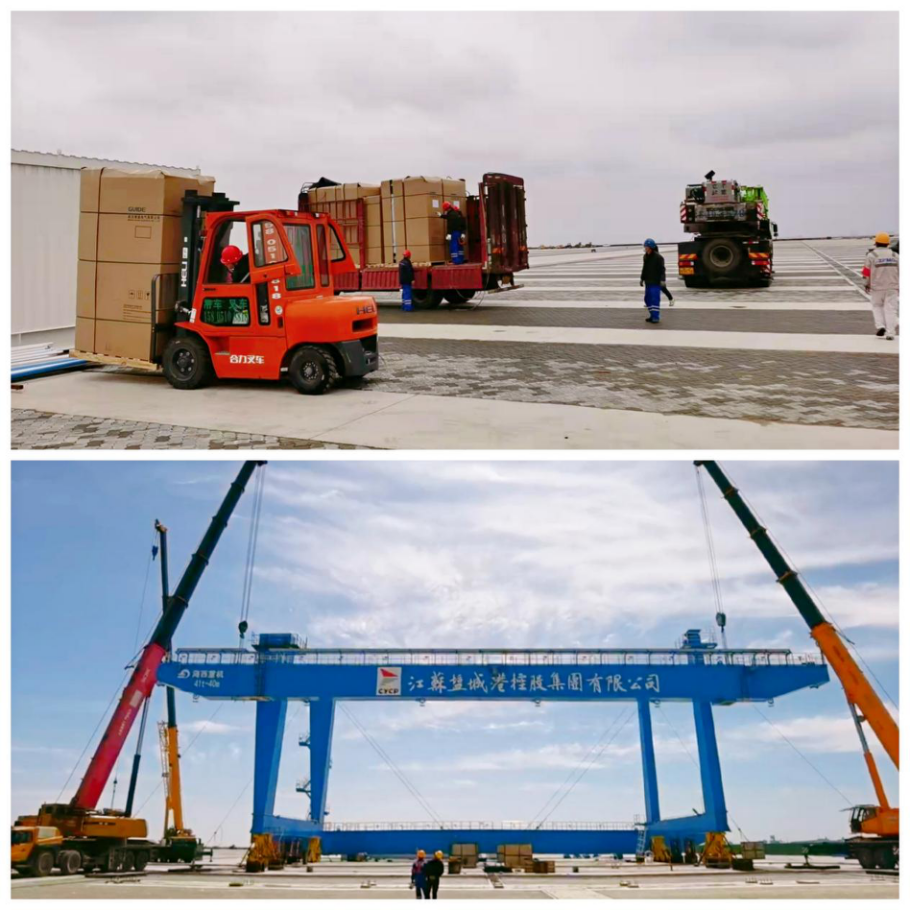 人勤春來早,處處耕耘忙。在鹽城港大豐港區(qū)糧食碼頭集裝箱堆場全自動化工程建設(shè)現(xiàn)場,一派熱火朝天的忙碌景象展現(xiàn)在眼前。大型運輸車、汽車吊等設(shè)備一字排開、整齊劃一,起重機主梁、支腿如塔林般巍然聳立、昂揚挺拔,作業(yè)人員和施工單位正緊鑼密鼓、爭分奪秒地趕搶工期。