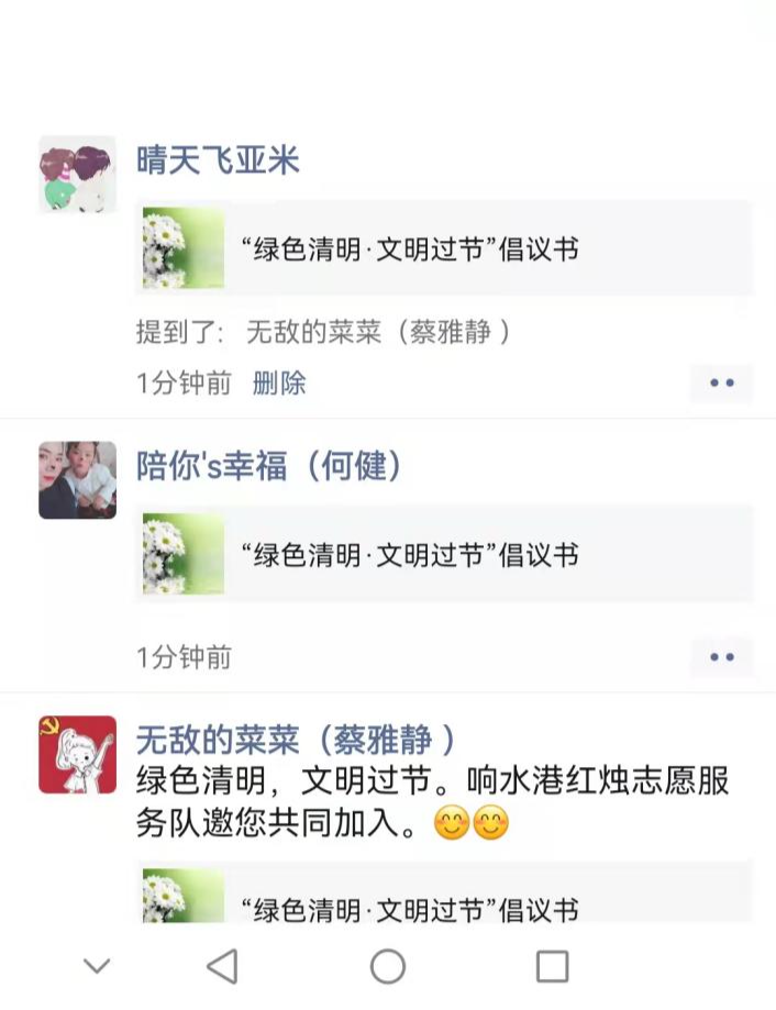 沒有一個冬天不可逾越,沒有一個春天不會到來。非常時期的特殊清明,堅守,就是一份力量;平安,就是一份希望。響水港區青年志愿者與您同行,從現在做起、從自身做起、從點滴做起,做文明祭掃的踐行者、傳統文化的傳承者、告別陋習的先行者,為守護青山綠水,建設美麗港城作出自己應有的貢獻。