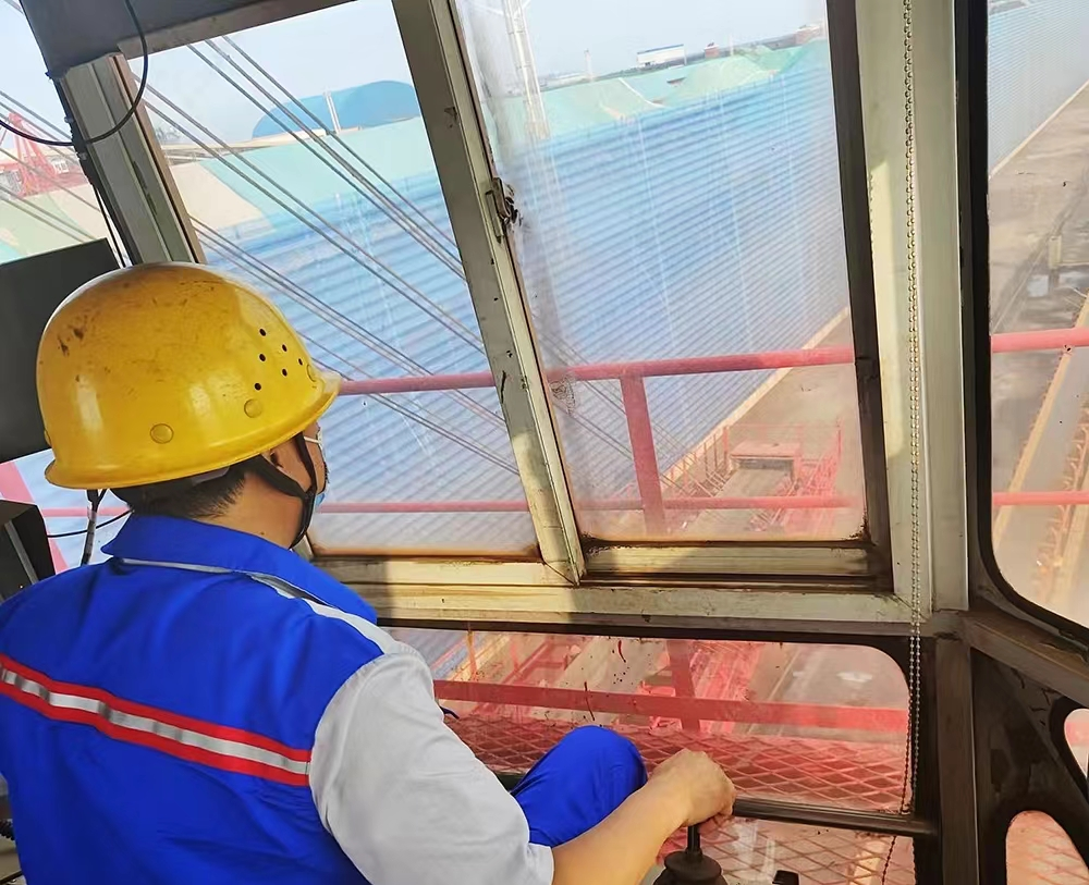 我的“座駕”是卸船機。我和搭檔勇挑重擔,接卸遠方來港的船舶,我們的任務是將貨物從船艙內卸載至皮帶機上。在卸船作業中,我們熟練運用掏艙作業、跑邊料等操作技巧,控制每個艙清倉時間2-3小時,不斷提升作業效率,縮短船舶滯留時間,服務廣大客戶。