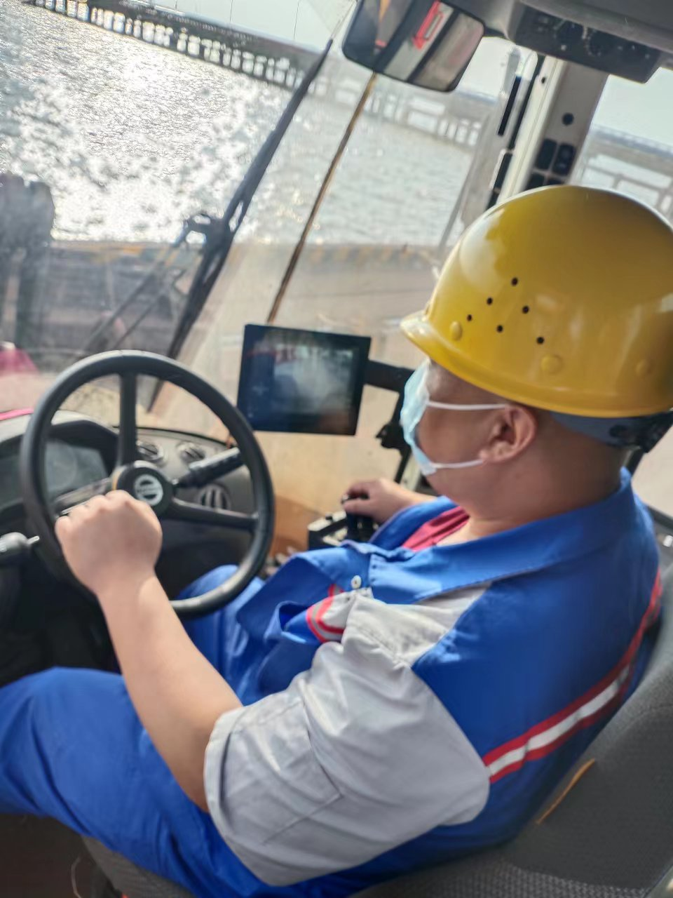 我的“座駕”是裝載機。我們的主要任務是貨物裝車、清艙供料、貨物打堆等。作業時,輕輕一抬鏟斗,就可以迅速把貨物舉高倒入車廂里,充分顯現出貨物裝卸作業“大力神”的美名。我們堅持“由點到面線路活,海陸雙供高效率”的作業原則,保證每條作業線穩定流暢。