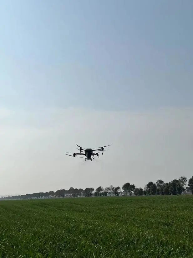 黨旗護綠,科技務農,無人機飛防為夏管“添翼”。清晨天剛蒙蒙亮的時候,華豐飛防突擊隊的小伙子們就已經到達田頭開展一天的飛防作業工作。隨著螺旋槳的一陣嗡鳴聲,無人機按照設定的路線,沿著稻田勻速飛行,均勻地為水稻噴灑農藥?!耙郧按蛩幩际强咳吮持幩畽C打,費時費力,現在我年紀大了,腿腳不利索,真的感謝公司飛防突擊隊的小伙子們,幫我解決了大難題,今年我種植的100多畝水稻,無人機1個小時就能完成作業,真是又快又好!”農場農戶激動地說。