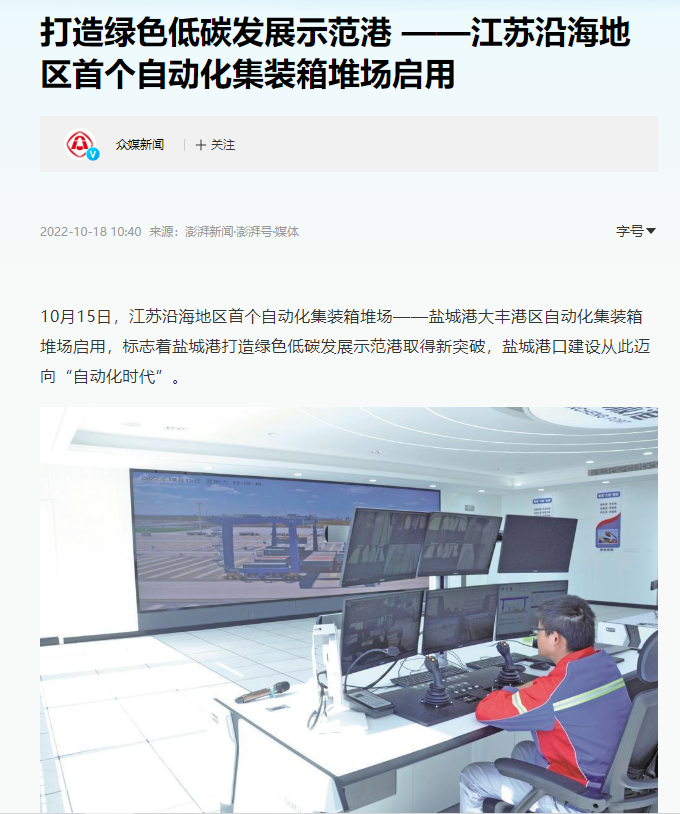鹽城港港口運(yùn)營(yíng)從此邁向“自動(dòng)化時(shí)代”