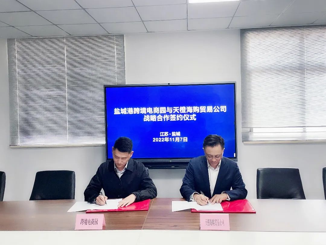 11月7日,天橙海購(gòu)國(guó)際貿(mào)易公司與江蘇鹽城港跨境電商公司戰(zhàn)略合作簽約儀式成功舉行,鹽城港跨境電商公司相關(guān)負(fù)責(zé)同志等參加。