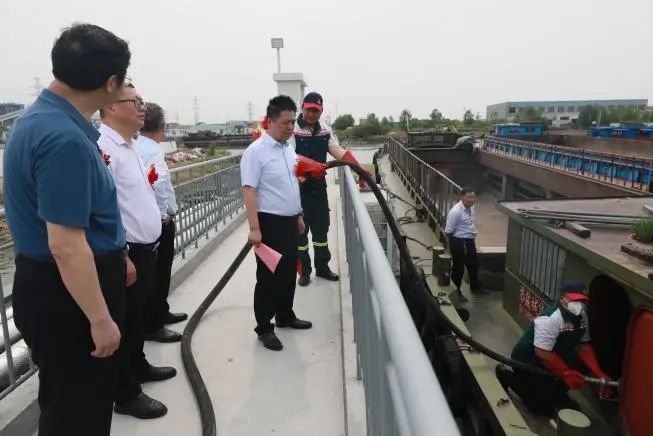 2024年6月16日上午,隨著一聲船笛響起,全市首家內河港水上加油站—建湖港水上服務區加油站宣布開業運營,陸港集團相關負責人等參加了開業儀式并在通過風險提示、靜電消除后進行了現場加油操作觀摩,此次首單業務為蘇鹽城貨092668等船舶提供了近500升柴油。