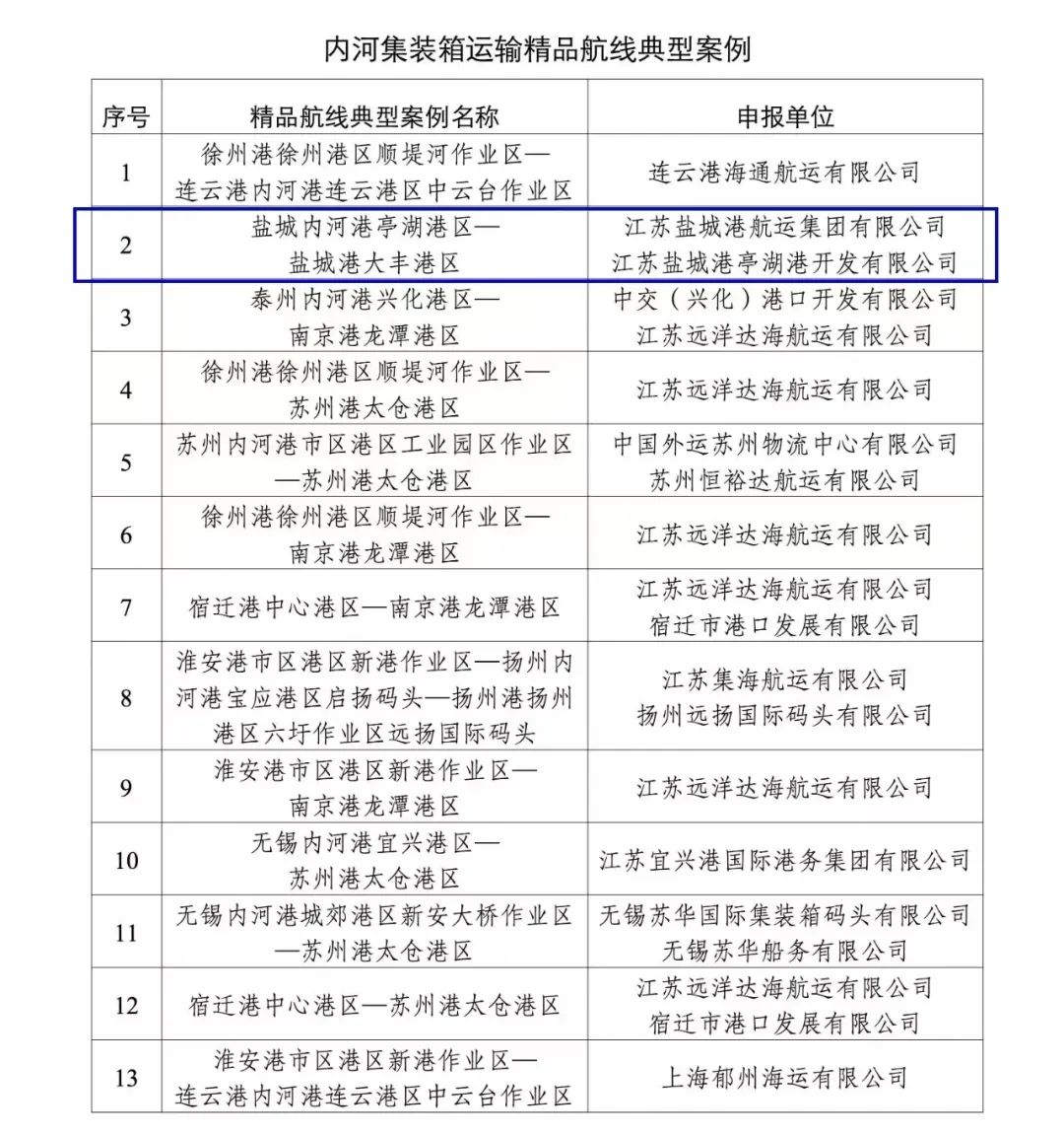 近日,省交通運(yùn)輸廳發(fā)布《內(nèi)河集裝箱運(yùn)輸精品航線(xiàn)典型案例》,航運(yùn)集團(tuán)自營(yíng)的鹽城內(nèi)河港亭湖港區(qū)—鹽城港大豐港區(qū)內(nèi)河集裝箱精品航線(xiàn)憑借出色的運(yùn)營(yíng)表現(xiàn)和創(chuàng)新舉措,入選全省內(nèi)河集裝箱運(yùn)輸精品航線(xiàn)典型案例。