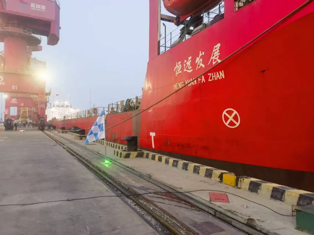 穩(wěn)穩(wěn)停靠在3.5萬噸級碼頭1#泊位