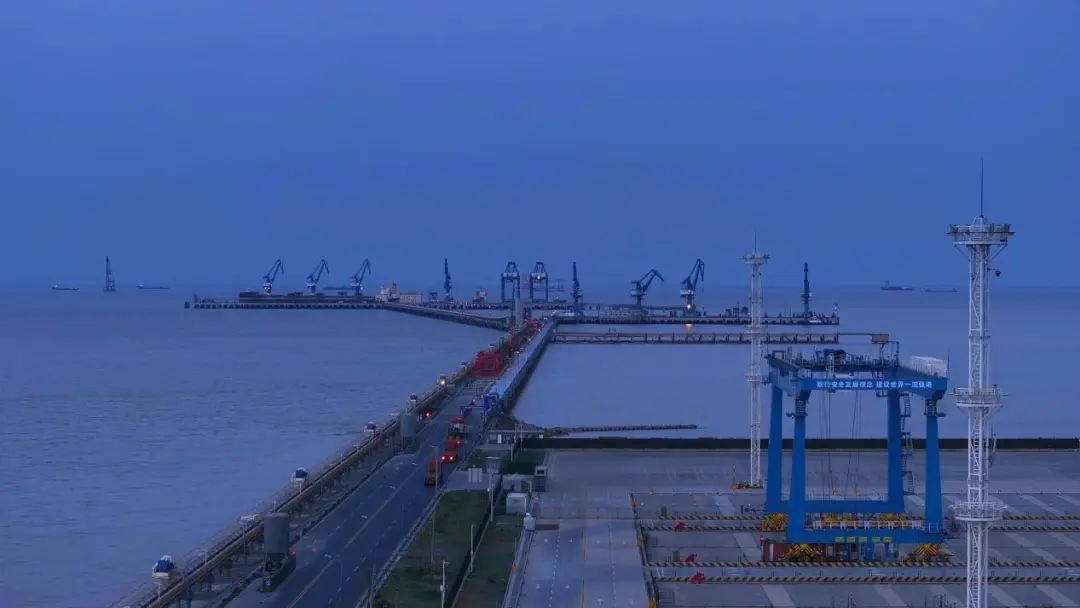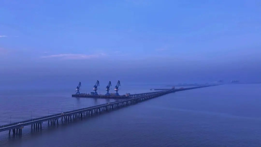 藍(lán)調(diào)時(shí)刻的美,在于它讓工業(yè)與浪漫共舞。當(dāng)夕陽沉入黃海的懷抱,港區(qū)的燈塔率先點(diǎn)亮,堆場(chǎng)的集裝箱矩陣褪去白晝的灰藍(lán),漸次染上紫粉的余暉,仿佛莫奈筆下的《干草堆》有了現(xiàn)代工業(yè)版;而泊位旁停靠的巨輪,甲板燈火如珠鏈,與天際殘留的鈷藍(lán)云霞交織,構(gòu)成一幅“海上生明月,天涯共此時(shí)”的恢宏長卷。