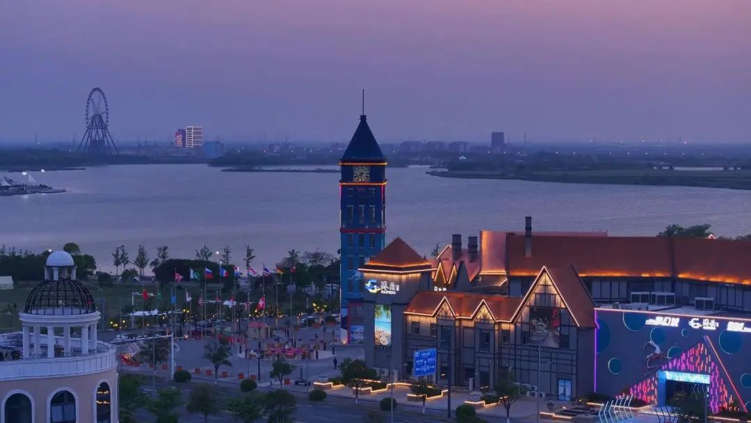 “藍(lán)調(diào)時(shí)刻”的魅力,在于它的短暫與永恒共生。當(dāng)最后一縷天光消失,港區(qū)并未沉入黑暗——龍門吊的警示燈如紅色螢火,港泊文旅上演著精彩的燈光秀,把跨境電商商貿(mào)小鎮(zhèn)變成了一幅賽博朋克風(fēng)格的數(shù)字畫卷。