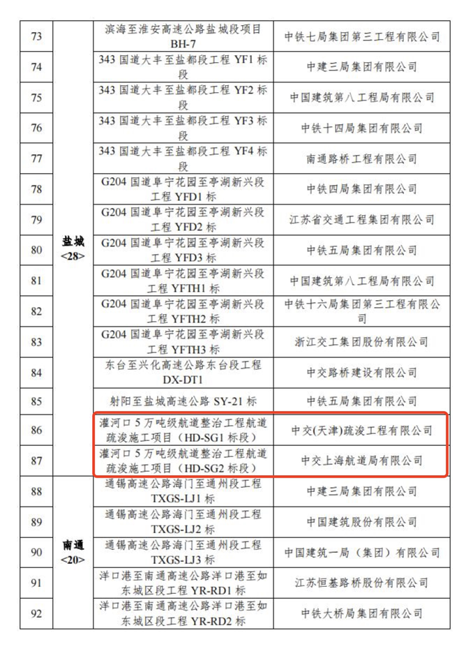近日,省交通運(yùn)輸廳發(fā)布2022年度全省公路水運(yùn)工程平安工地建設(shè)省級(jí)“示范工程(工地)”考核評(píng)價(jià)結(jié)果,灌河口5萬噸級(jí)航道整治工程2個(gè)疏浚標(biāo)段獲評(píng)2022年度江蘇省公路水運(yùn)工程平安工地建設(shè)省級(jí)“示范工地”。