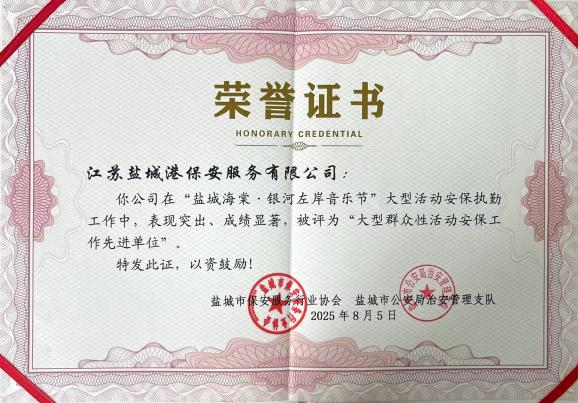 終場哨響,掌聲未歇。公司全體人員凝心聚力,場均堅守超十二小時,用一場場零失誤、零事故的出色表現,為賽事的完美呈現添上了圓滿句號,并贏得了來自賽事主辦方與現場球迷的“滿堂彩”。服務升華品質,專業鑄就口碑。憑借在市級多項大型文旅、音樂等活動中持續交出“硬核”保障答卷,保安公司被市公安局評為“大型群眾性活動安保工作先進單位”。