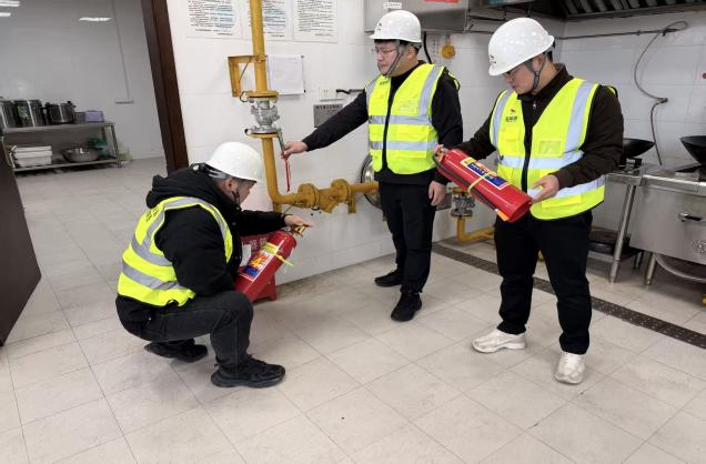 緊扣冬季氣候干燥、用火用電負荷驟增的火災易發特征,結合香港火災中暴露的逃生避險短板,集團打造“理論+實操”雙輪賦能體系。特邀消防救援支隊專家開展專題培訓,通過事故案例復盤、法規解讀、器材實操三大模塊,重點講解易燃材料管控規范、初期火災撲救技巧及“濕毛巾捂鼻低姿逃生”等實用方法;組織實戰演練,強化報警聯動、人員引導等關鍵環節協同能力,演練后即時復盤優化流程。同時建立常態化教育機制,利用班前會推送消防微視頻、安全例會剖析典型案例,將消防安全知識融入日常管理,筑牢全員“人人講安全、事事防火災”的思想防線。